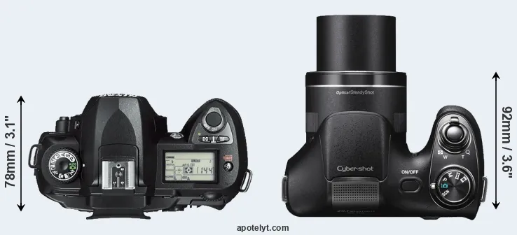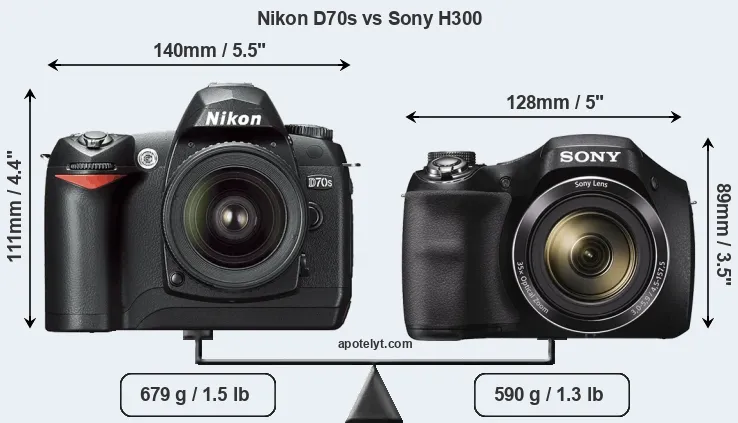 Size Nikon D70s vs Sony H300