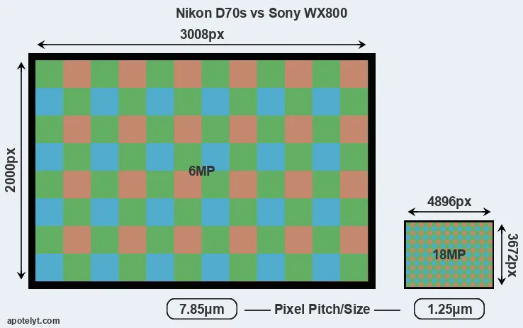 | Sensor Specs | Nikon D70s | Sony WX800 |