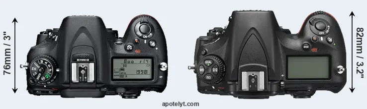 | 2. | Nikon D810 | 146 mm | 123 mm | 82 mm | 980 g | 1200 | Y | Jun 2014 | US$ 3 299 | ebay.com | |