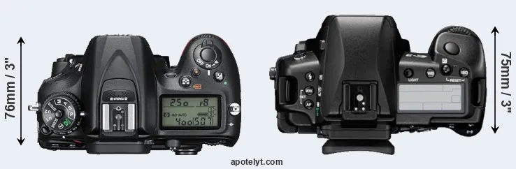 | 1. | Nikon D7200 | 136 mm | 107 mm | 76 mm | 765 g | 1110 | Y | Mar 2015 | US$ 1 199 | ebay.com | |