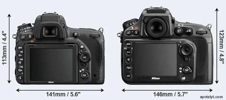 | 4. | Nikon D500 | 147 mm | 115 mm | 81 mm | 860 g | 1240 | Y | Jan 2016 | US$ 1 999 | ebay.com | |