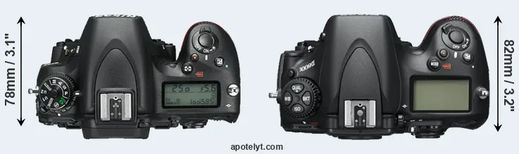| 10. | Nikon D810 | 146 mm | 123 mm | 82 mm | 980 g | 1200 | Y | Jun 2014 | US$ 3 299 | ebay.com | |