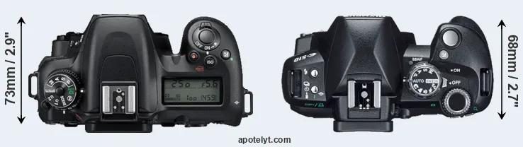| 1. | Nikon D7500 | 136 mm | 104 mm | 73 mm | 720 g | 950 | Y | Apr 2017 | US$ 1 299 | amazon.com | |