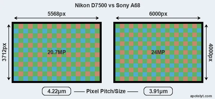 | Sensor Specs | Nikon D7500 | Sony A68 |