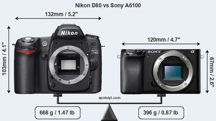 Size Nikon D80 vs Sony A6100