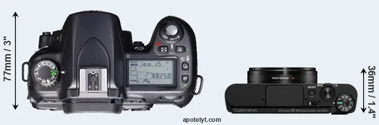 | 1. | Nikon D80 | 132 mm | 103 mm | 77 mm | 668 g | 600 | n | Aug 2006 | US$ 999 | ebay.com | |