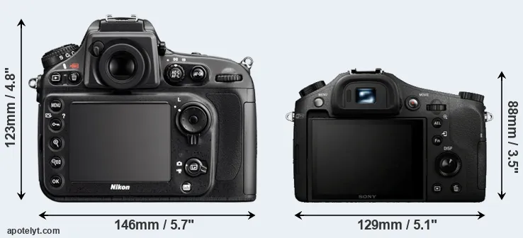 Going beyond this snapshot of core features and characteristics, what are the differences between the Nikon D800 and the Sony Cyber-shot DSC-RX10? Which one should you buy? Read on to find out how these two cameras compare with respect to their body size, their imaging sensors, their shooting features, their input-output connections, and their reception by expert reviewers.