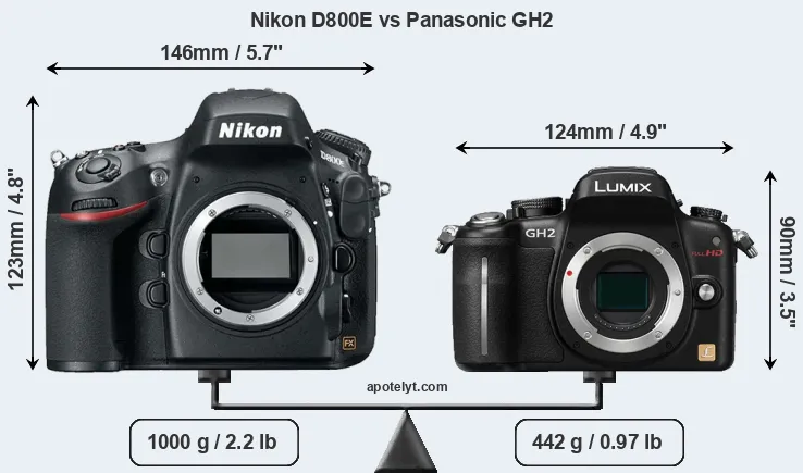 Size Nikon D800E vs Panasonic GH2