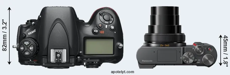 The above size and weight comparisons are to some extent incomplete and possibly misleading, as the TZ200 has a lens built in, whereas the D800E is an interchangeable lens camera that requires a separate lens. Attaching the latter will add extra weight and bulk to the setup. You can compare the optics available for the D800E and their specifications in the Nikon Lens Catalog.