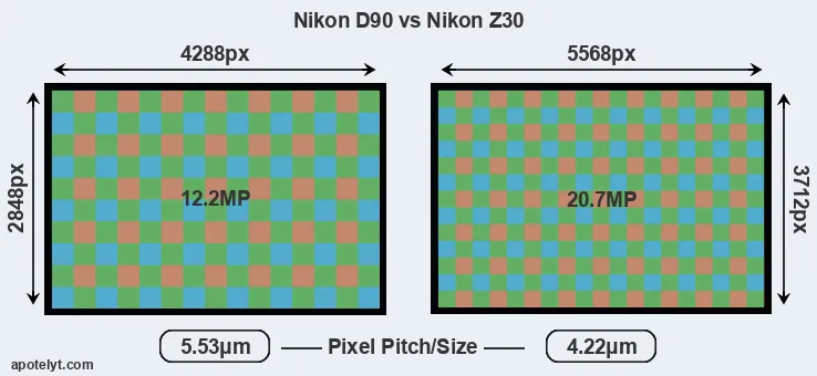 | Sensor Specs | Nikon D90 | Nikon Z30 |