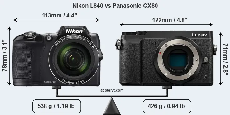 | Body Specs | Nikon L840 | Panasonic GX80 |