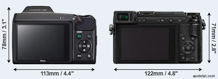 | Screen Specs | Nikon L840 | Panasonic GX80 |