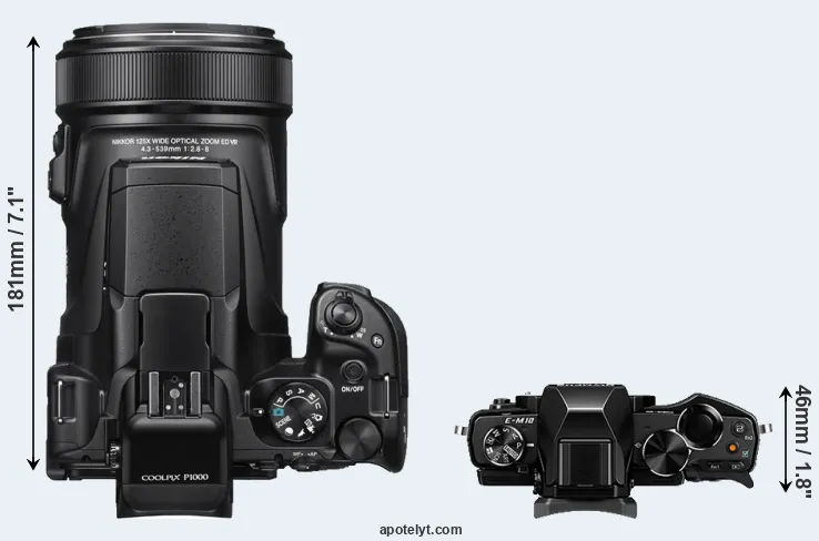 | Body Specs | Nikon P1000 | Olympus E-M10 |