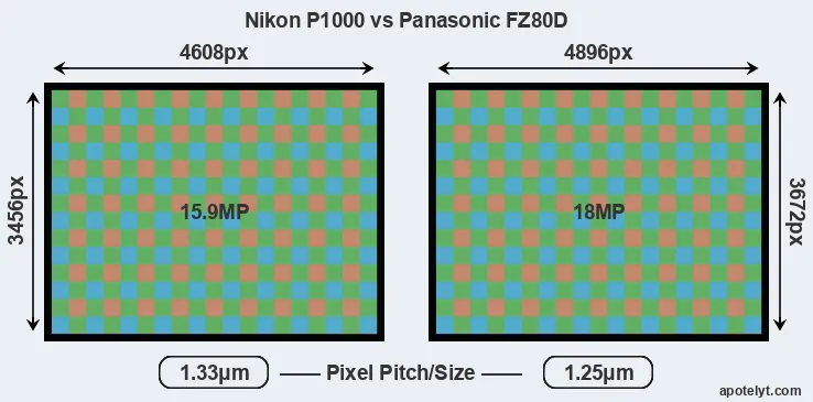 | Sensor Specs | Nikon P1000 | Panasonic FZ80D |