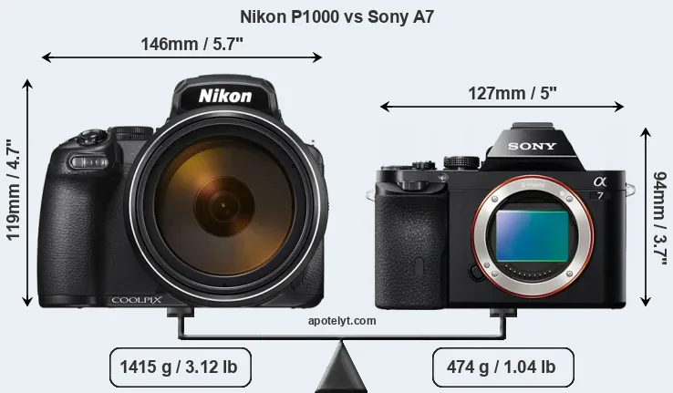 Specifications: Nikon P1000 vs Sony A7