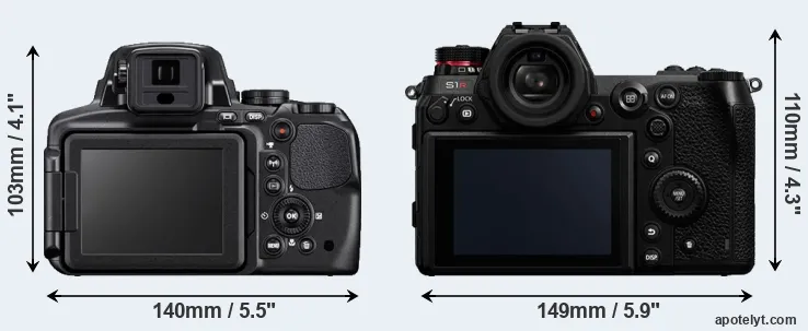 The above size and weight comparisons are to some extent incomplete and possibly misleading, as the P900 has a lens built in, whereas the S1R is an interchangeable lens camera that requires a separate lens. Attaching the latter will add extra weight and bulk to the setup.