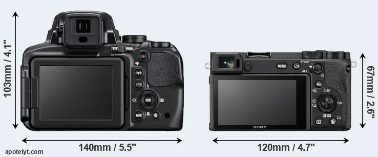 The above size and weight comparisons are to some extent incomplete and possibly misleading, as the P900 has a lens built in, whereas the A6600 is an interchangeable lens camera that requires a separate lens. Attaching the latter will add extra weight and bulk to the setup. You can compare the optics available for the A6600 and their specifications in the Sony E-Mount Lens Catalog.