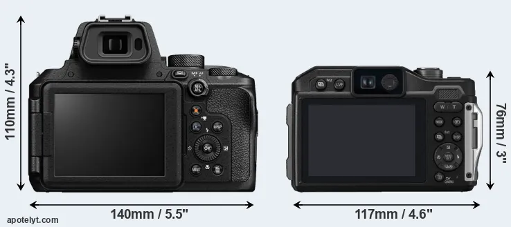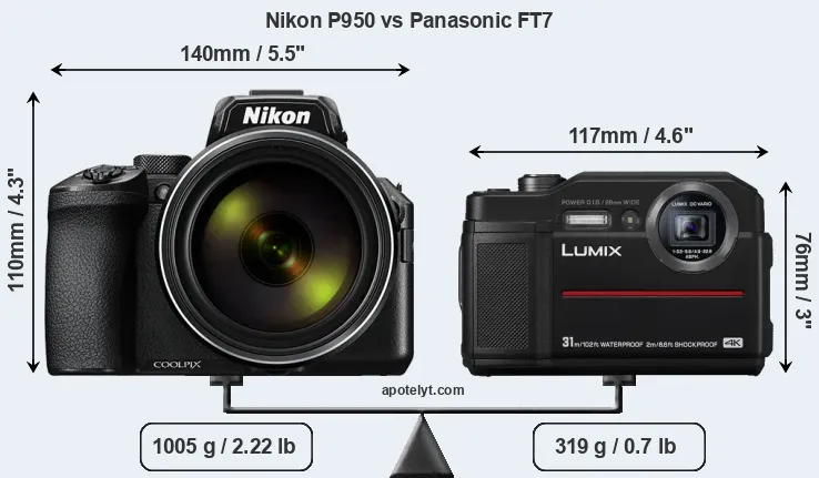 Size Nikon P950 vs Panasonic FT7