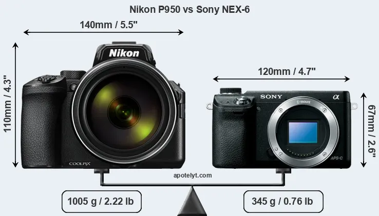 | Body Specs | Nikon P950 | Sony NEX-6 |