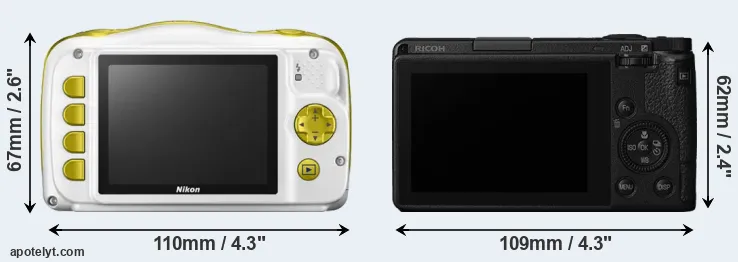 | Body Specs | Nikon W150 | Ricoh GR III |