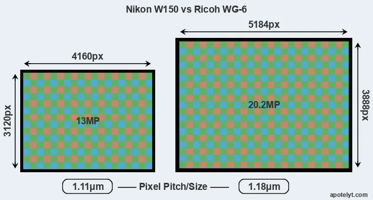 | Sensor Specs | Nikon W150 | Ricoh WG-6 |