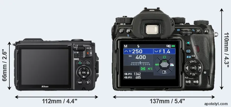 | Body Specs | Nikon W300 | Pentax K-1 II |