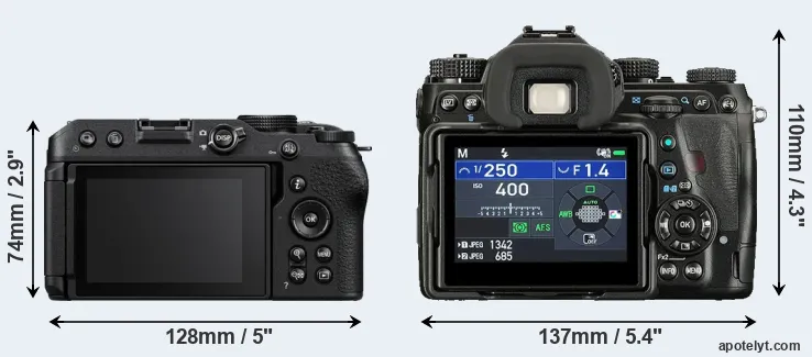 | 2. | Pentax K-1 II | 137 mm | 110 mm | 86 mm | 1010 g | 670 | Y | Feb 2018 | US$ 1 999 | amazon.com | |