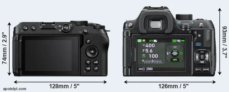 | 15. | Pentax KP | 132 mm | 101 mm | 76 mm | 703 g | 390 | Y | Jan 2017 | EUR 1 299 | ebay.com | |