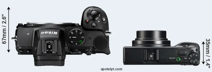 The above size and weight comparisons are to some extent incomplete and possibly misleading, as the GR IIIx has a lens built in, whereas the Z5 is an interchangeable lens camera that requires a separate lens. Attaching the latter will add extra weight and bulk to the setup.