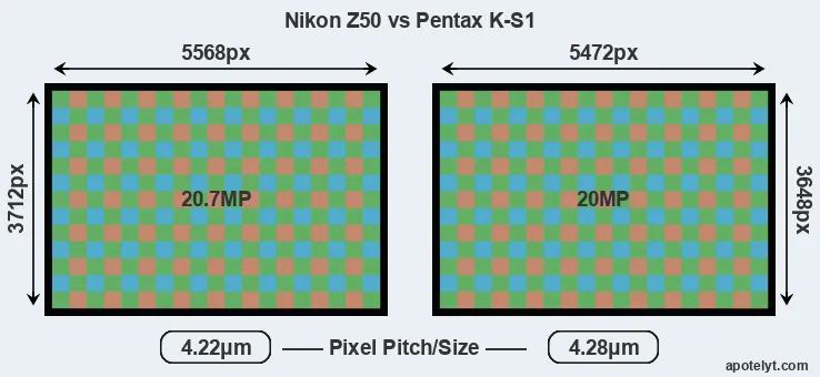 | Sensor Specs | Nikon Z50 | Pentax K-S1 |