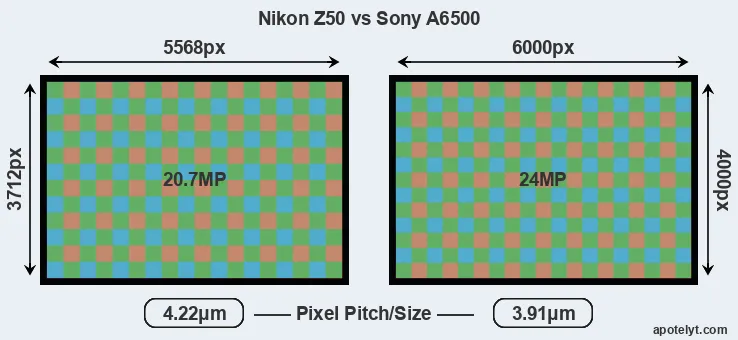 | Sensor Specs | Nikon Z50 | Sony A6500 |