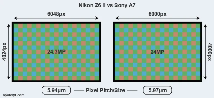 | Sensor Specs | Nikon Z6 II | Sony A7 |