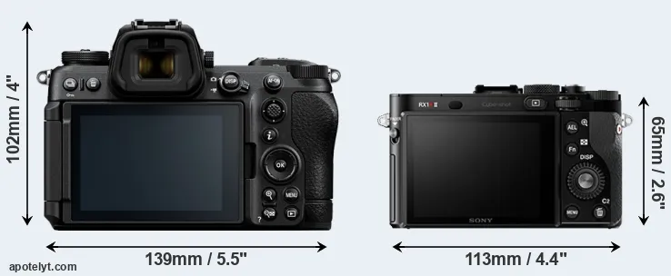 The above size and weight comparisons are to some extent incomplete and possibly misleading, as the RX1R II has a lens built in, whereas the Z6 III is an interchangeable lens camera that requires a separate lens. Attaching the latter will add extra weight and bulk to the setup.