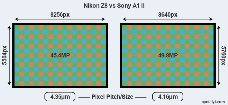 | Sensor Specs | Nikon Z8 | Sony A1 II |