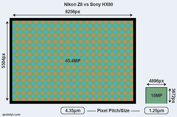 | Sensor Specs | Nikon Z8 | Sony HX80 |