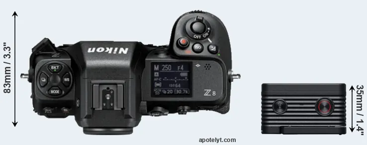 | 1. | Nikon Z8 | 144 mm | 119 mm | 83 mm | 910 g | 340 | Y | May 2023 | US$ 3 999 | amazon.com | |