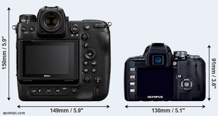 Size Nikon Z9 vs Olympus E-400