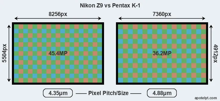 | Sensor Specs | Nikon Z9 | Pentax K-1 |