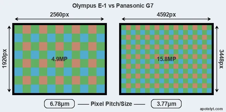 | Sensor Specs | Olympus E-1 | Panasonic G7 |