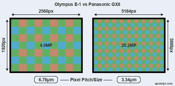 | Sensor Specs | Olympus E-1 | Panasonic GX8 |