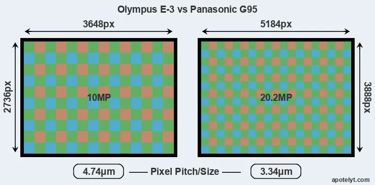 | Sensor Specs | Olympus E-3 | Panasonic G95 |