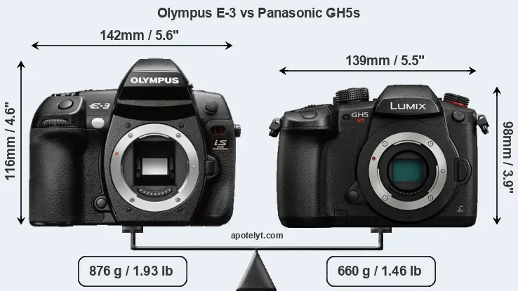 | Body Specs | Olympus E-3 | Panasonic GH5s |