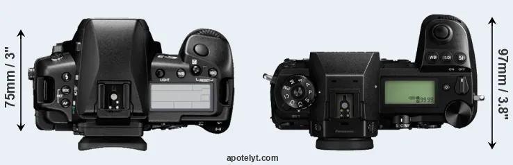 If the front view area (width x height) of the cameras is taken as an aggregate measure of their size, the Olympus E-3 and the Panasonic S1 are of equal size. However, the S1 is markedly heavier (16 percent) than the E-3. In this context, it is worth noting that both cameras are splash and dust-proof and can, hence, be used in inclement weather conditions or harsh environments.