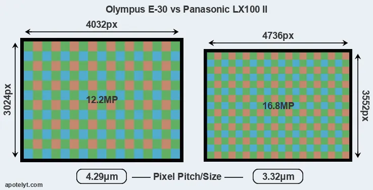 | Sensor Specs | Olympus E-30 | Panasonic LX100 II |