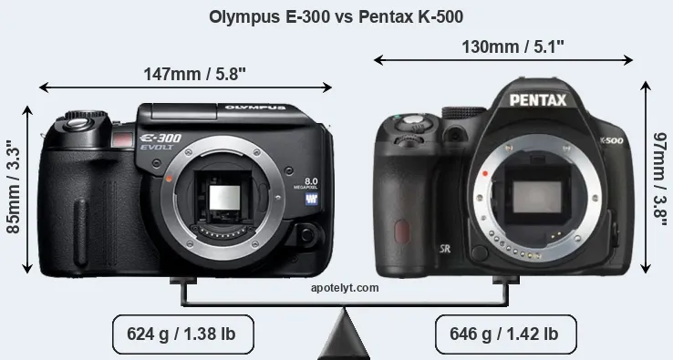 | Body Specs | Olympus E-300 | Pentax K-500 |