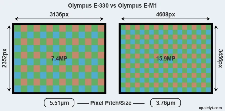 | Sensor Specs | Olympus E-330 | Olympus E-M1 |