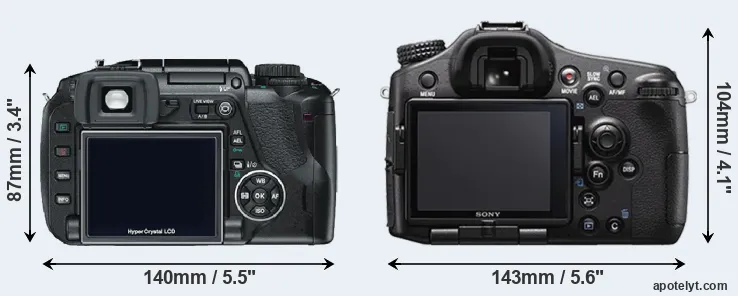 | 16. | Sony A77 | 143 mm | 104 mm | 81 mm | 732 g | 470 | Y | Aug 2011 | US$ 1 399 | ebay.com | |