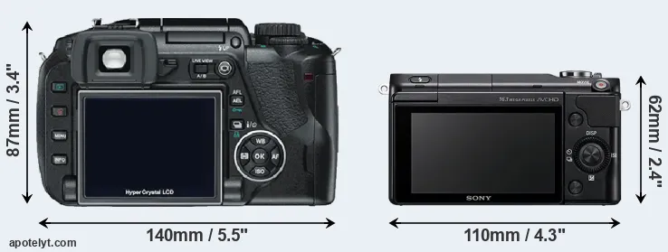 | 14. | Sony A5100 | 110 mm | 63 mm | 36 mm | 283 g | 400 | n | Aug 2014 | US$ 549 | ebay.com | |