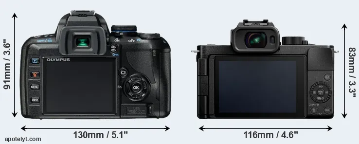 The above size and weight comparisons are to some extent incomplete since they do not consider the interchangeable lenses that both of these cameras require. Both cameras have similarly sized sensors, but DSLRs have a larger flange-to-focal plane distance than mirrorless cameras, which imposes contraints on the optical engineering process and generally leads to bigger and heavier lenses. You can compare the optics available for the two cameras in the Four Thirds Lens Catalog (E-420) and the Micro Four Thirds Lens Catalog (G110). Mirrorless cameras, such as the G110, have moreover the advantage that they can use many lenses from other systems via adapters, as they have a relatively short flange to focal plane distance.