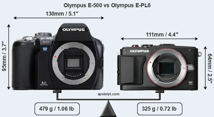 | Body Specs | Olympus E-500 | Olympus E-PL6 |